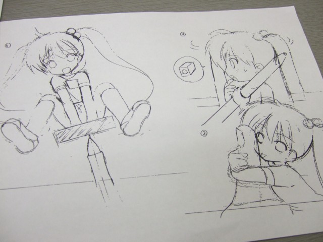 11月某日、ソリッドシアターにて、とれたて!ほび〜ちゃんねるでかなり“アレ”な取扱説明書とされている、ソリッドシアターの「ぷれい☆ステーショナリー」(AM)の初回生産特典となる、「あずまゆき氏描下しフルカラー取扱説明書」の原画イラストをいくつか見せていただくことが出来ました〜!