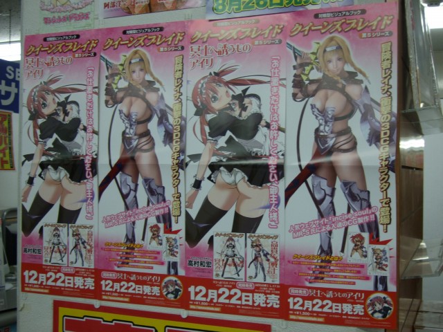アキバblogさんがお伝えされているように、アキバでクイーンズブレイドの第5弾「冥土へ誘うものアイリ」(AM)と、いつもご紹介させていただいている、incise soulのMR-S氏がCGを作成されている「高貴なる戦士レイナ 3D」(AM)のPOP掲示が開始しています。18日にはK-BOOKSでもPOP掲示が開始していて、POPとは別に、各2点ずつイラストの展示も開始されていました。