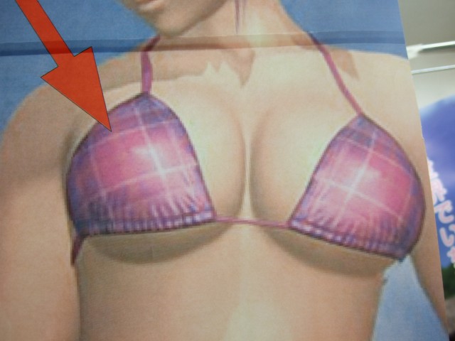 ゲームシティ1Fから2Fに上がった先のエスカレーターホールでは、アヤネのむねぽちをさして「その、先端はボタンなのかッ!?」とかかれたPOPが掲示されていました。