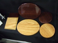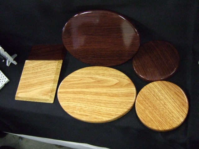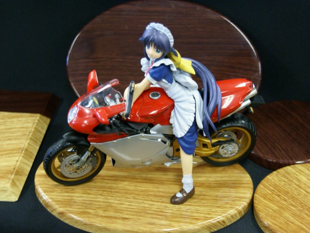 別途展示されていた、木目プリント台座。2006年12月〜2007年1月発売予定で、価格は○が税込315円、□が税込420円、やや大きめな楕円が税込525円の予定みたいです。