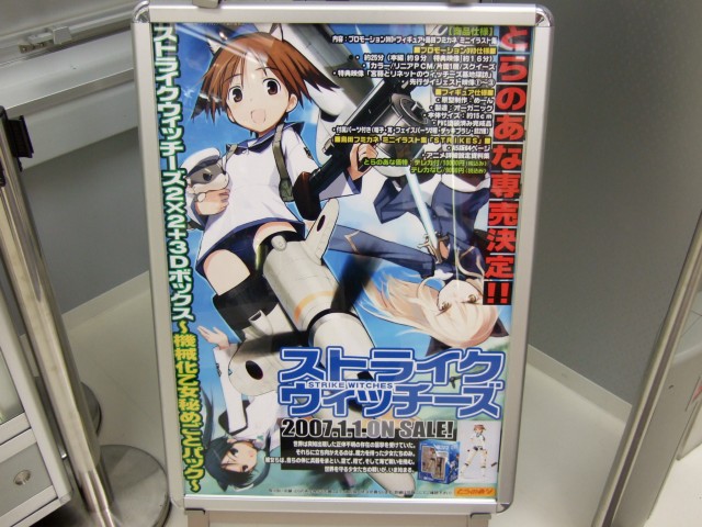 とらのあな本店5Fにて、島田フミカネ氏がデザインする、魔力を持った少女たちの、自らの体に兵器をまとって繰り広げられる戦いを描くアニメ「ストライクウィッチーズ」のプロモーションDVD「ストライクウィッチーズ2×2+3Dボックス 〜機械化乙女秘めごとパック〜」付属の「宮藤芳佳フィギュア」のサンプル展示が開始しています。これは、とらのあな専売で販売されるものみたい。