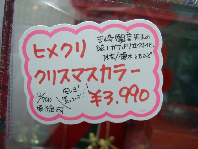 その海洋堂ホビーロビーでは、海洋堂「ヒメクリイメージガール」(参考レビュー)のカラバリの、海洋堂「ヒメクリ イメージガール・モーダ・ノエル(クリスマスカラーVer.)」(AM)のサンプル展示も開始していました。