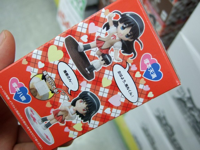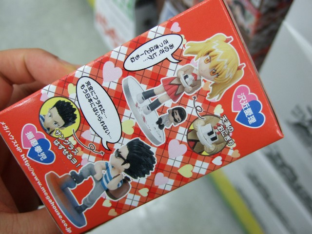 見た感じ全高は65〜75mmくらいで、塚本天満、塚本八雲、沢近愛理のノーマル3種とバージョン替え3種の6種+播磨拳児(サングラス着脱可)の全7種。1BOX8個入り。