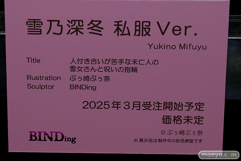 BINDingの新作エロフィギュア「人付き合いが苦手な未亡人の雪女さんと呪いの指輪 雪乃 深冬 私服Ver.」が予約受付開始!『人気イラストレーターぷぅ崎ぷぅ奈氏が描く「雪乃 深冬」が今度は私服姿で登場!あの雪乃さんが今度は私服であなたの元へ!大胆なポーズに加え、彼女の普段が垣間見える私服と言う溢れんばかりのエロスを込めてお届けいたします。貴方の所有欲を満たす、1/4スケールのビッグサイズに布製網タイツを使用した、紳士淑女もニッコリの仕様でお届けいたします。』というものです!「第10回 ネイティブグループ合同展示会(エロホビ)」の会場で展示されていた彩色サンプルの様子を、画像レビューとしてお伝えします!(アダルトフィギュアとなります!18歳未満の方は閲覧をお控えください。)