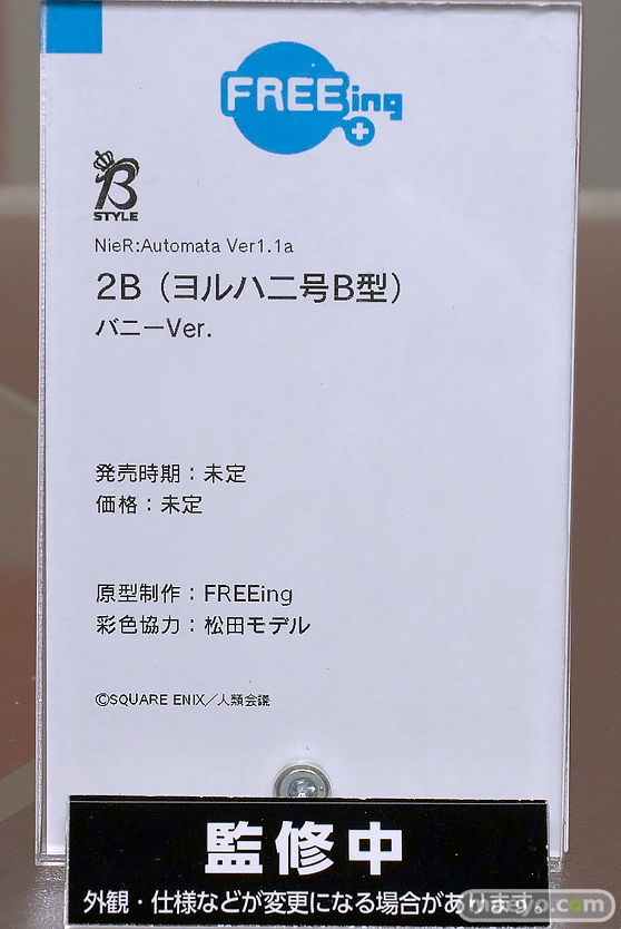 フリーイングの新作美少女フィギュア「NieR:Automata Ver1.1a 2B(ヨルハ二号B型)バニーVer.」が予約受付開始!『アニメ『NieR:Automata Ver1.1a』より「2B(ヨルハ二号B型)」が1/4スケール、迫力のバニーフィギュアで登場です!特徴ある衣装の一部を採用した、オリジナルのバニーコスチュームを着衣。「2B」らしい堂々たる立ち姿で立体化いたしました。差し替えパーツとして、ゴーグル無しVer.の瞳が見える顔パーツが付属。』というもので、原型制作はFREEingさん。彩色は松田モデルさん。「2025 冬 ホビーメーカー合同展示会」の会場で展示されていた彩色サンプルの様子を、画像レビューとしてお伝えします!
