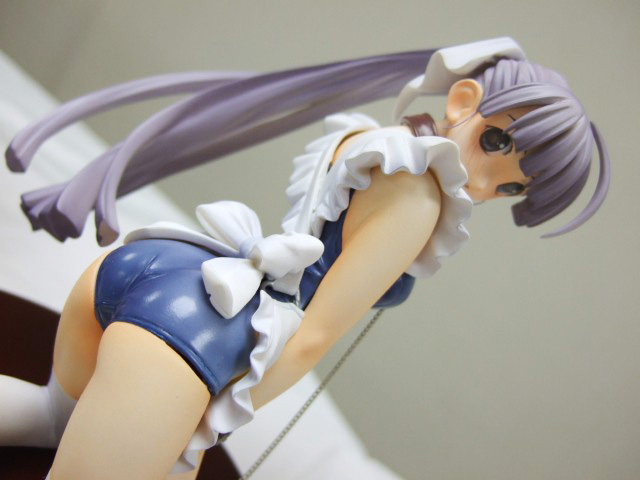 2006クレイズ萌え〜ろ祭りで販売されたイベント限定ガレキ「すく水ペッタンより 橋本タカシ先生デザインver.」の作例見本レビューです。クレイズの中の人のご好意により、色々な角度から撮影させていただきました!これは、橋本タカシ氏の、すく水ペッタンのイラストを立体化したもので、作例は、紺のスク水+エプロン+首輪、手かせと、エプロン無しの白スク+首輪+手かせの2種。