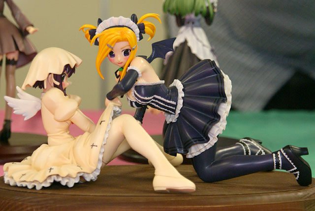 クレイズ萌え〜ろ祭りでは、販売されていたものの作例などの展示のほかにも、数十体にも及ぶ、クレイズものはもちろん、T’s systemAGGRESSIVEなどの、ガレキ作例や原型などの展示も行われていました。中にははじめてみたような気がするものもあったり。その、大きな台にずらーっと並べられていた作品を、一通り撮ってきましたので、まとめてお伝えします。