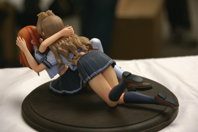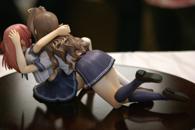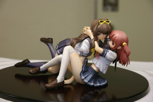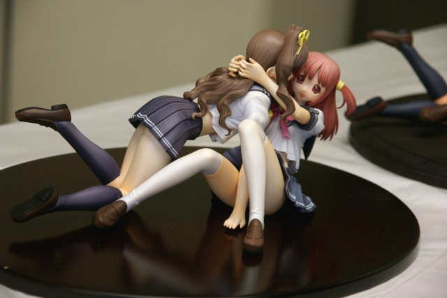 明記はされていませんでしたが、上にかぶさっている娘がおそらく、Dream Party「メモリアルフィギアVol.1 咲花(しょうか)」(通販版参考レビュー)同様のコンビ、きみづか葵氏デザイン、みすまる☆ましい氏(AGGRESSIVE)原型で、下で受け入れている娘が、蓮見江蘭氏デザイン、宮川武氏(T’s system)原型じゃないかなと。