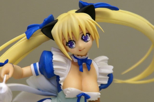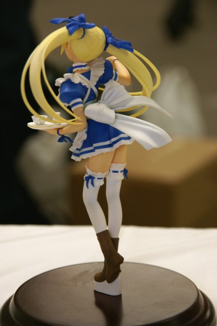 2006年のクレイズ萌え〜ろ祭りで販売されたイベント限定ガレキ「かんなぎれい先生作 ウエイトレスさん」作例見本の展示の様子をお伝えします。これは、かんなぎれい氏がK-BOOKSのオリジナルルテレカ用に描かれた「ウエイトレスさん」を、葉月かるま氏が立体化したもの。イラストでも強い存在感を見せ付けた乳の谷間も、忠実に立体化されていますwそしてやはり縞ぱむ