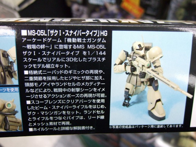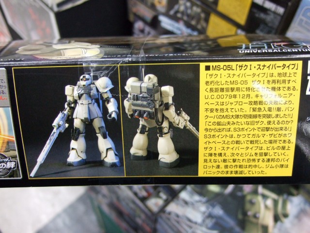「HGUC ザクI・スナイパータイプ」(AM)のパッケ表。側面には機体解説や可動部位の解説など。