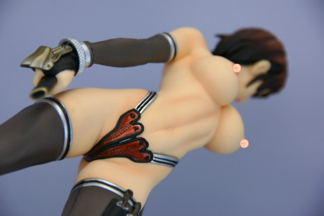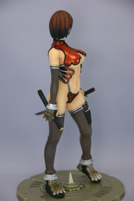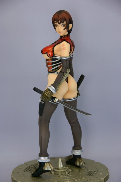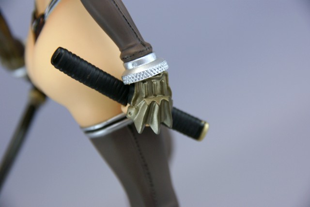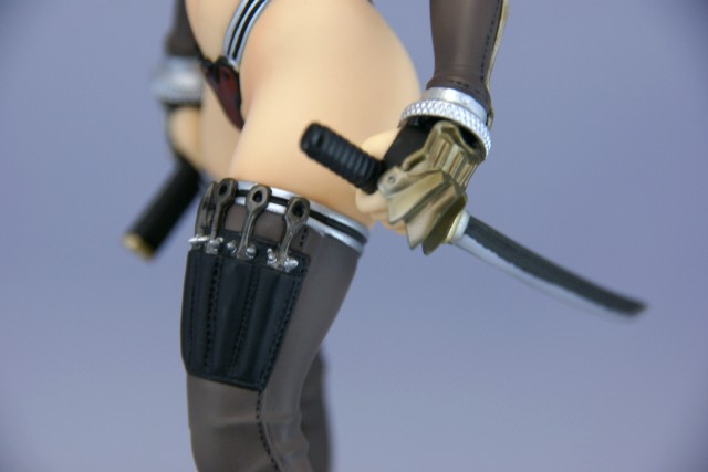 縫い目まで再現された手足の具足や、左フトモモのクナイ、手に持つ刀、鞘、外せる上着の背中部分の造形など、エロ以外の部分も非常に魂のこもった造形ですな〜!