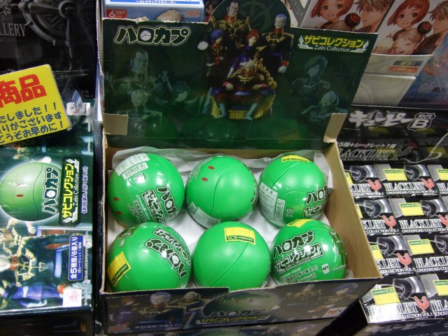 Amazonの解説によると「ハロのカプセルにコレクションフィギュアの入ったおなじみのハロカプ。そのハロカプにザビ家だけをフューチャーしたコレクションアイテムの登場です。全てを集めて肖像画のように飾ってみよう。」というもの。右の画像はキャラシティでのサンプル展示の様子。