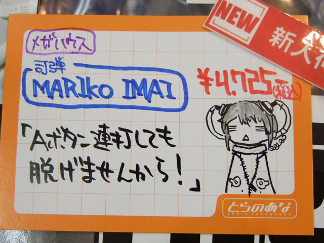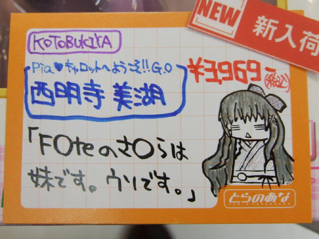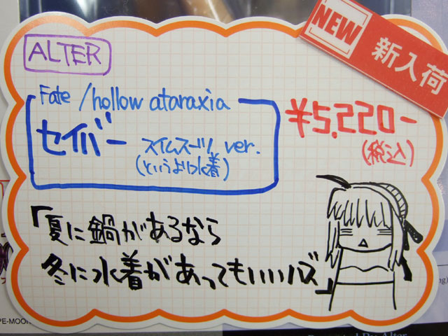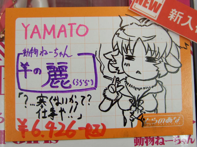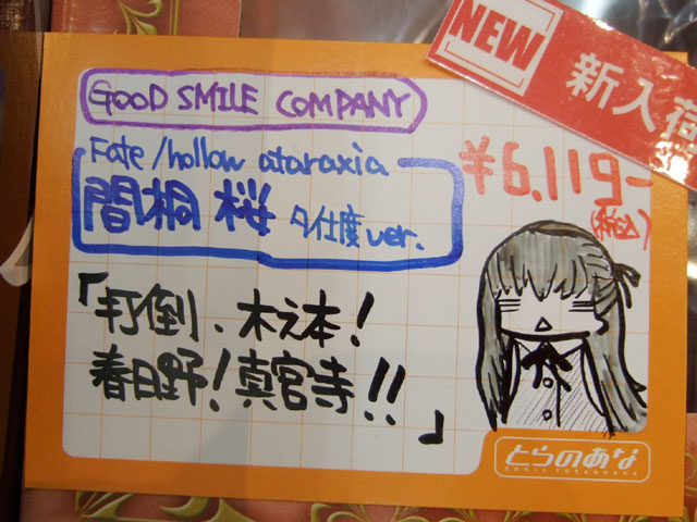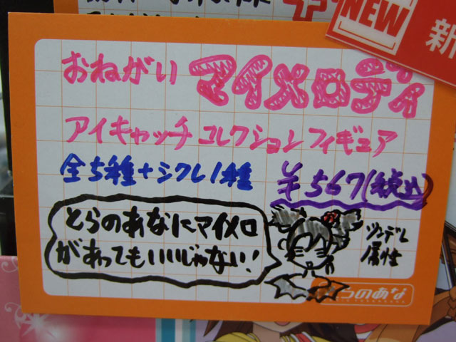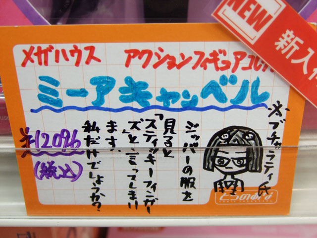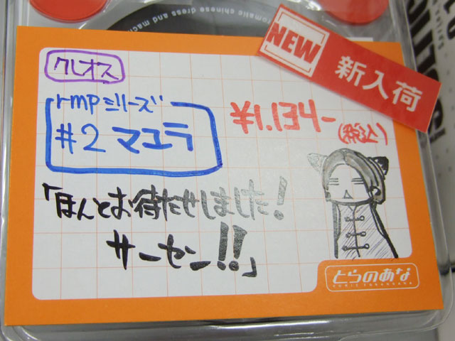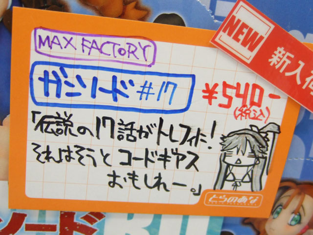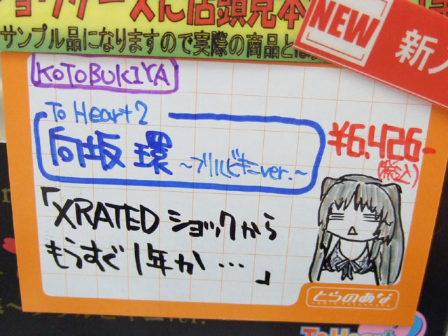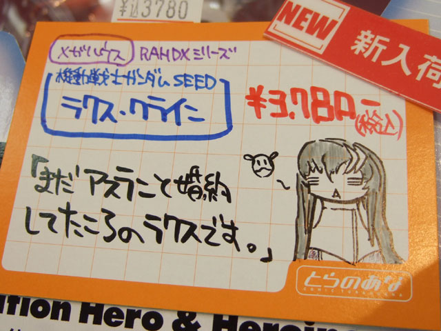 とらのあな本店5Fホビーコーナーの商品につけられている販促(?)用のヘタレPOPの11月14日〜12月1日に見かけたものをまとめてお伝えします。今回、ヘタレPOP職人の方が急病でダウンしてた時期があり、代理の方が描かれたニセヘタレPOPもありましたw 左の画像はダイキ工業「戦国ブレード こより 1/4」(AA)(参考レビュー)の「フィギュアってレベルじゃねーぞ!」