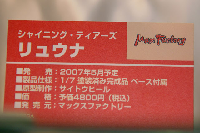 シャイニング・ティアーズ リュウナ。撮影禁止だったのでPOPのみで。