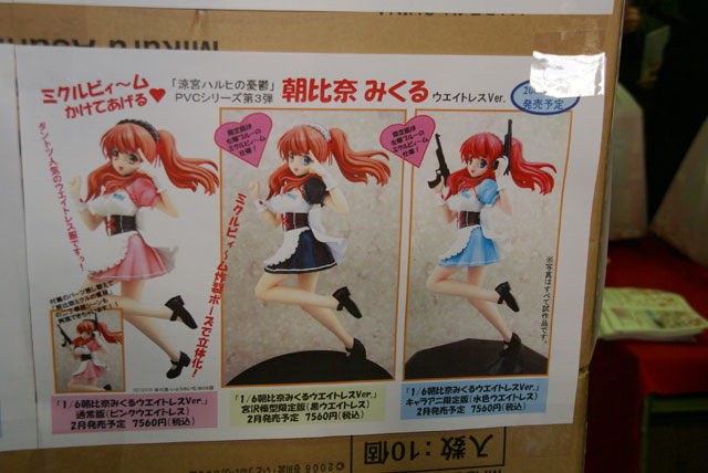 涼宮ハルヒの憂鬱 朝比奈みくる ウェイトレスverのノーマル(ピンク)」(AA)、「宮沢模型限定(黒)」(AM)、「キャラアニ限定(青)」(CA)のPOP。何気にキャラアニ限定青の画像は初公開。