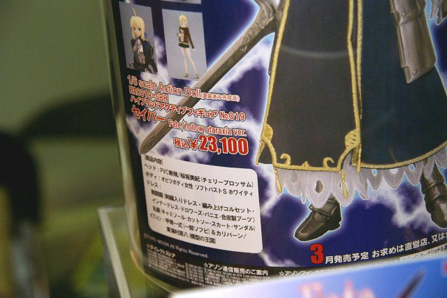 掲示されていたPOPによると、1/6スケールで、原型製作は、PVC新規ヘッドが桜坂美紀氏(チェリーブロッサム)、甲冑一式(一部ソフビ)&カリバーンが東海村原八氏(模型の王国)。