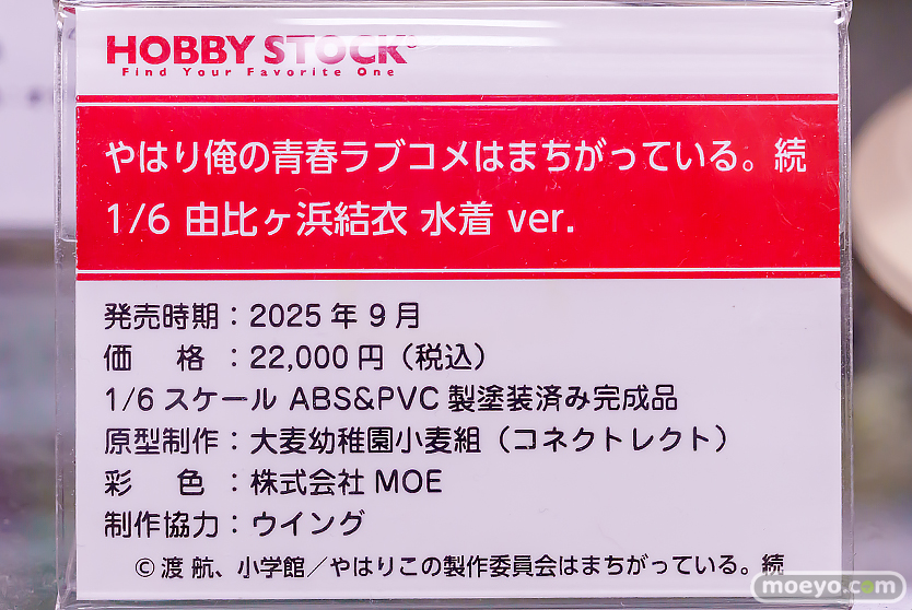 ホビーストックの新作美少女フィギュア「やはり俺の青春ラブコメはまちがっている。続 1/6 由比ヶ浜結衣 水着 ver.」の彩色サンプルが、あみあみ 秋葉原ラジオ会館店で展示!『大胆なビキニ水着姿に笑顔でビーチボールで遊ぶポーズが彼女の魅力を存分に表現しています。明るく元気いっぱいの「ガハマさん」を是非お手元でご堪能ください!』というもので、原型制作は大麦幼稚園小麦組(コネクトレクト)さん。彩色は株式会社MOEさん。制作協力はウイングさん。その展示の様子を画像レビューとしてお伝えします!