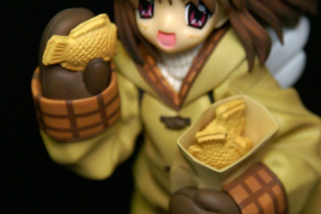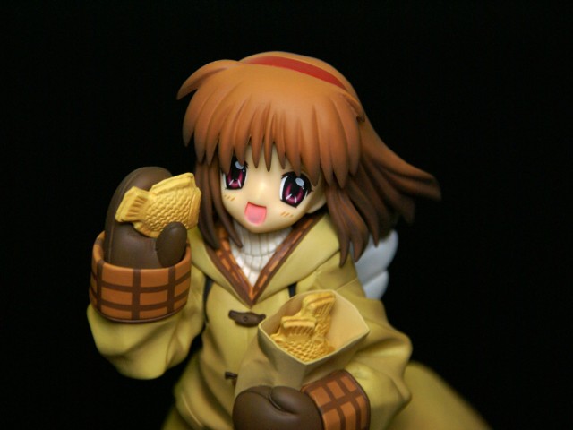 コトブキヤの商品説明によると『7年ぶりに訪れた雪降る町で繰り広げられる、幻想的なストーリー。1999年にPCゲームとして発売され、今も尚様々なメディアにて展開され続けている『Kanon』。雪に包まれた町を、いつも走り回っている約束の少女「月宮あゆ」。もはや彼女の特徴の一つとなってしまっている食い逃げシーンを元気いっぱいに再現いたしました。』というもの。(Kanon (ゲーム) – Wikipedia)