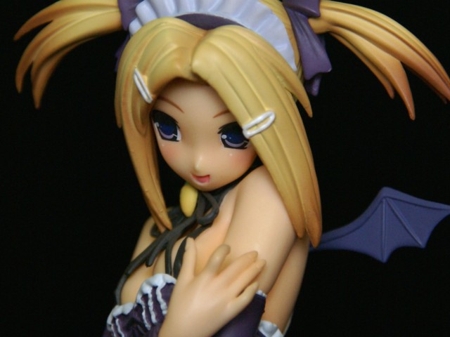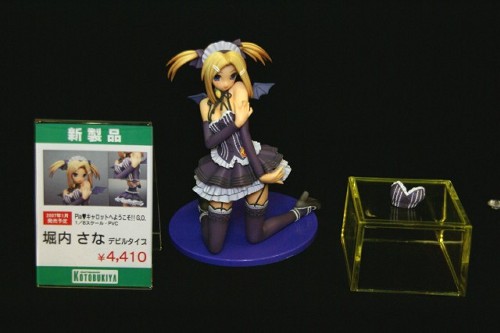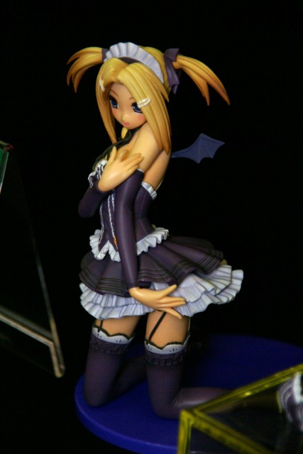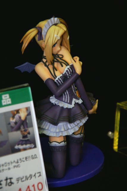 美少女フィギュアコンベンション(BFC)東京2006のコトブキヤブースでは、コトブキヤ「Piaキャロットへようこそ!! G.O. 堀内さな デビルタイプ」(AA)のPVCサンプルの展示がされていました。これは、尻丸出しメイド服の「木ノ下留美」(参考レビュー)、巨乳和服の「西明寺美湖」(参考レビュー)同様、PiaキャロG.O.のヒロイン「堀内さな」を立体化したもの。乳周りずりさげパーツが付属。