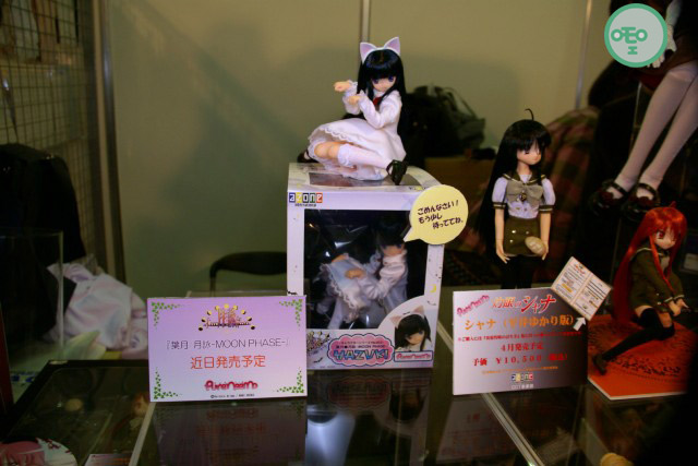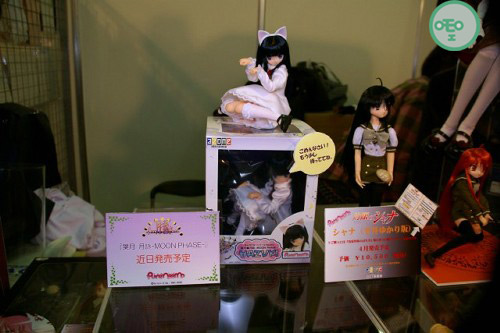 美少女フィギュアコンベンション(BFC)東京2006のアゾンブースでは、セイバードールのほかにも、「ピュアニーモ キャラクターシリーズNo.3 月詠 -MOON PHASE- 葉月」(AM)のサンプルが展示されていました。これは、以前自分が衝動買いしてしまった「あいか」と同じ「ピュアニーモ素体」を用いて、アニメ「月詠 -MOON PHASE-」の「葉月」をオメガカワイク立体化したもの。