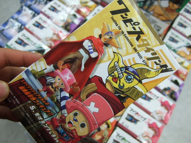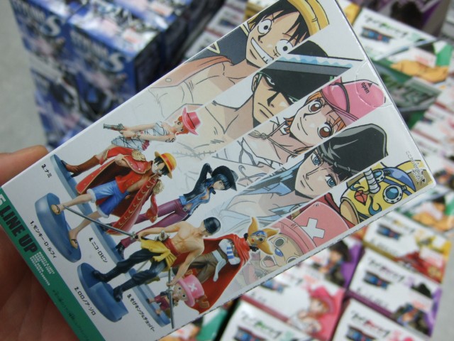 モンキー・D・ルフィ、ロロノア・ゾロ、ナミ、ニコ・ロビン、そげキング&チョッパー5種+レアバージョンとしてウソップ&チョッパー(表情変え)+1種の計7種。1BOX10個入り。