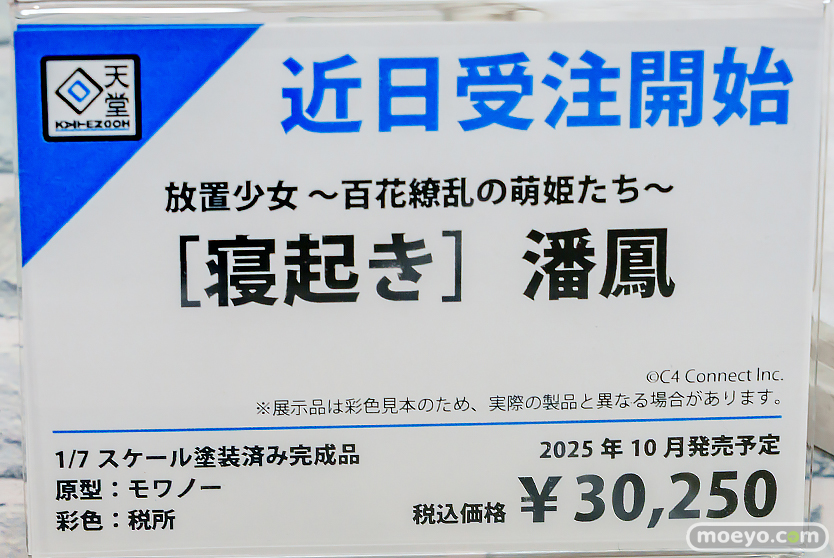 回天堂の新作美少女フィギュア「放置少女 ~百花繚乱の萌姫たち~ [寝起き] 潘鳳(ハンホウ)」の彩色サンプルが、秋葉原のボークスホビー天国2で展示!『PCおよびスマートフォン向けRPG『放置少女』より、副将・潘鳳を[寝起き](URアバター)の大きく背中が開いたセクシーパジャマ姿でフィギュア化!大きく開いた背中。豊満な胸元と隙間から覗き見えるワキから胸にかけてのライン。ミニ丈のパジャマからスラリと伸びた脚。元イラストの柔らかさやしっとりしたみずみずしさを感じる肉感豊かなバスト・ヒップ等ボディラインの再現にこだわりました。』というもので、原型制作はモワノーさん。彩色は税所さん。その展示の様子を画像レビューとしてお伝えします!