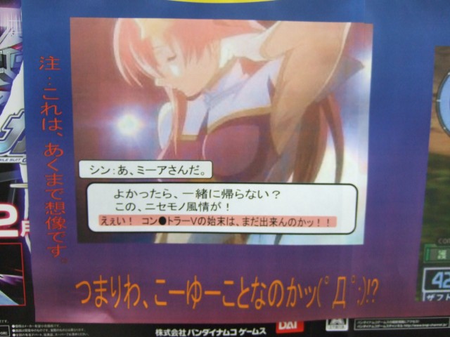 12月7日、PS2「機動戦士ガンダムSEED DESTINY 連合vs.Z.A.F.T.II PLUS 」(AA)が発売し、「絶対忘れません・・・・あなたの乳」もあった、ゲームシティの2Fエスカレーターエントランス部分では、ポスターやPOP、デモモニター上映などが展開されていました。