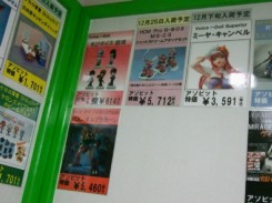 キャラシティの、12月バンダイ新作+αの発売予定表の掲示の様子。