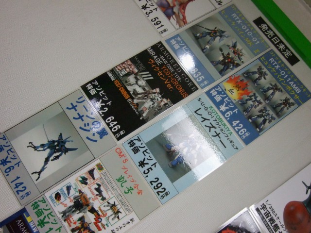 キャラシティ2Fにて、12月バンダイ新作+αの発売予定表の掲示が開始していました。それによるとEXTENDED MS IN ACTION!!の「νガンダム 」(AA)と「サザビー」(AA)は12月20日頃、1/100 MG ストライクフリーダムガンダムの「通常版」(AM)と「フルバーストモード」(RA)が21日頃、「Voice I-doll Superior ミーア・キャンベル 」(AA)は12月下旬。ほか、まとめておきましたのでどうぞ〜!
