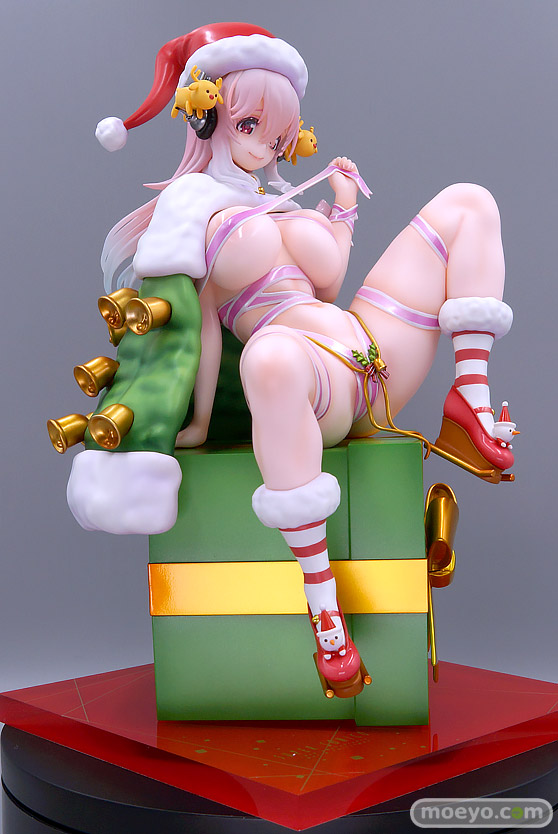 ミメヨイ「すーぱーそに子 10th Merry Christmas !」(製品版) 商品説明 10thアニバーサリー企画の一環で描き下ろされたイラストを元に津路先生の徹底監修のもと調整されたクリスマスそに子ちゃんになります! 差し替え仕様となってますので、マントと帽子を脱いださらにあらわな姿が楽しめちゃいます。 台座は今回も(いつものように)アクリルプレートが付属いたします。 リボンで身を包んでかわいいプレゼントになっちゃったそに子ちゃんをお手元で楽しんでくださいね! ●マント脱着可能。 頭部差し替えによる軽装でもお楽しみ頂けます ■ 商品名:「すーぱーそに子 10th Merry Christmas !」 ■ 発売元:ミメヨイ ■ 仕様:PVC塗装済完成品 ■ サイズ:1/7スケール 全高:約255mm(台座込み、帽子を含む頭頂部まで)、台座:150mm×150mm ■ 原型制作:日不見ひずみ ■ 彩色:五日市歩 ■ 価格:税込23,650円 ■ 発売:2024年12月(発売中) 撮影・文:もんぷち。 関連 ■ミメヨイ新作美少女フィギュア「すーぱーそに子 10th Merry Christmas !」2種の彩色サンプルがアキバで展示! ■ミメヨイ新作美少女フィギュア「すーぱーそに子 10th Merry Christmas !」彩色サンプルがアキバで展示! ■ミメヨイ ■ミメヨイの商品紹介ページ © 2006 NITRO ORIGIN