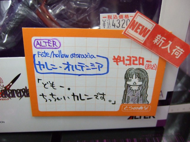 どもー。ちっちゃいカレンです。」として12月5日に発売されていた、アルターの「Fate/hollow ataraxia カレン・オルテンシア」(AA)ですが、その生サンプルが、アルター葉月同様キャラシティにて展示されていることに気がつきました。どうやら数日前からコソーリあったみたいw アルターはサンプル展示があまりないので、実際のフィギュアを間近で確認できるのは貴重かも?