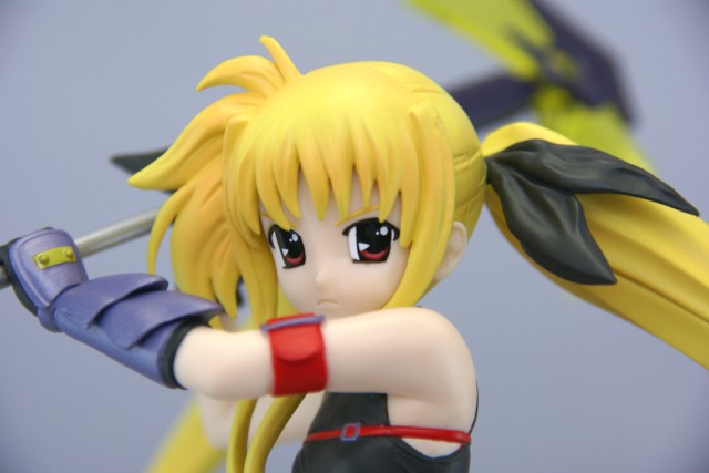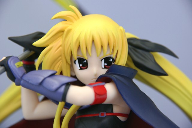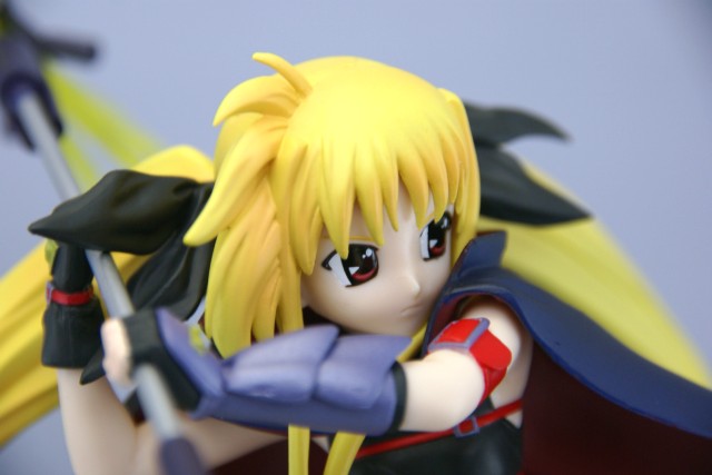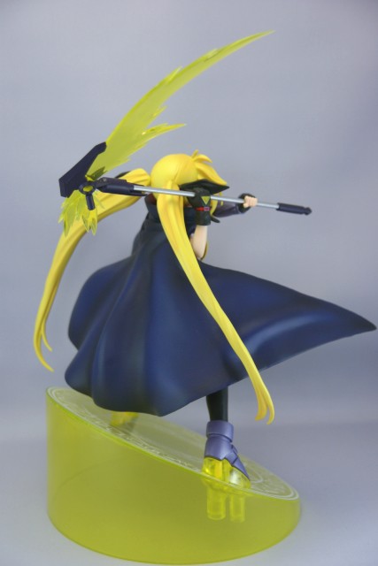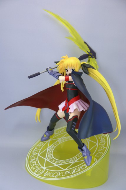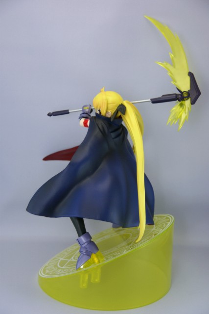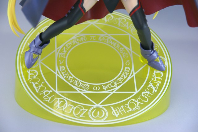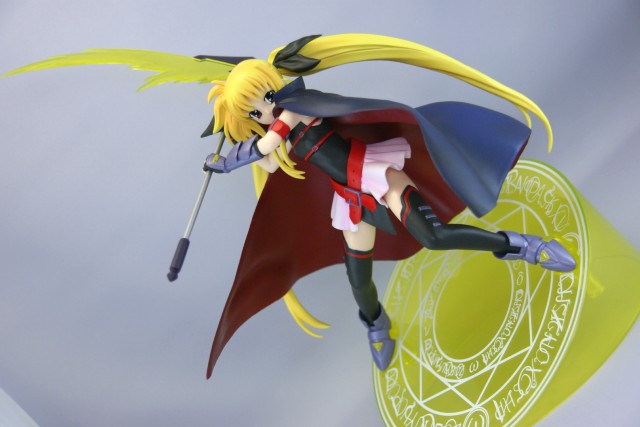 台座はなのは同様、斜めにカットされた魔方陣タイプで、フィギュア自体に勢いをつける効果が。