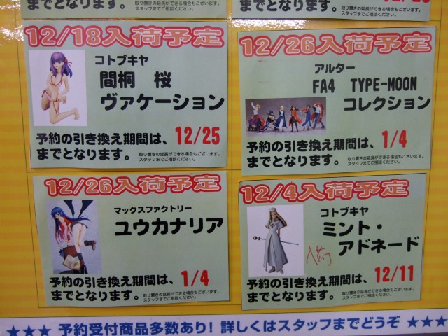 ソフマップ本店では、12月の美少女フィギュア+αの発売予定表が更新されていました。