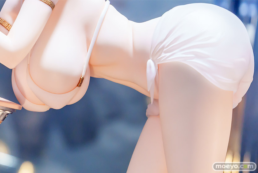 造形では、首筋から背中、腰まで続く自然なボディライン、そしてスラリと伸びた美脚が絶妙なバランスで表現され、セクシーさとエレガンスを兼ね備えたポージングに仕上がっています。下半身の衣装にはクリア素材が使用されており、透け感のあるセクシーな魅力を演出。
