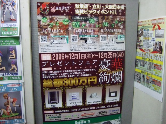 ■ コトブキヤ秋葉原店、立川店、大阪日本橋店で開催中の「豪華絢爛プレゼントフェア」のもらえる景品の展示がコトブキヤ秋葉原店で開始していましたが、13日に確認したところ、1月31日まで有効な500円/1000円のクーポン券もラインナップに入ってました。