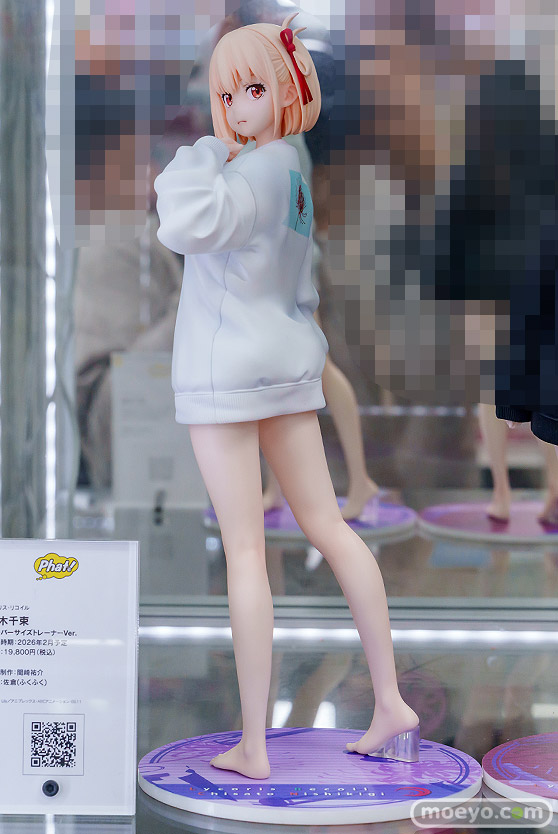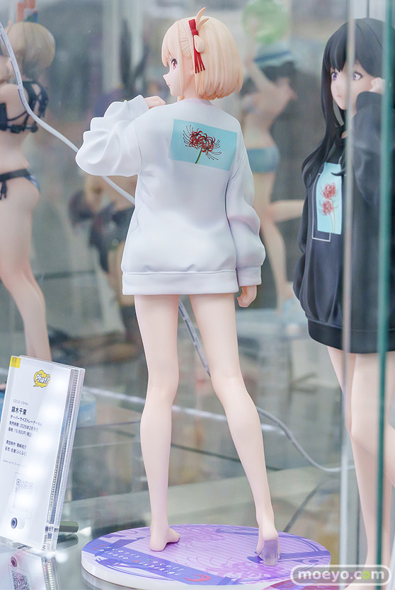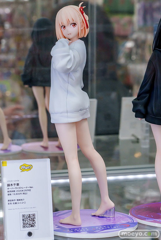 ファット・カンパニーの新作美少女フィギュア「リコリス・リコイル 錦木千束 オーバーサイズトレーナーVer.」の彩色サンプルが、あみあみ 秋葉原ラジオ会館店で展示!『TVアニメ『リコリス・リコイル』より錦木千束が1/7スケールフィギュアで登場。第2話のアイキャッチイラストをモチーフにオーバーサイズのトレーナー姿に身を包み、素足のままこちらを見つめる姿を立体化しました。オプションとして「銃」パーツも付属致しますので、お好みのスタイルでご堪能ください。』というもので、原型制作は間崎祐介さん。彩色は佐倉(ふくふく)さん。その展示の様子を画像レビューとしてお伝えします!