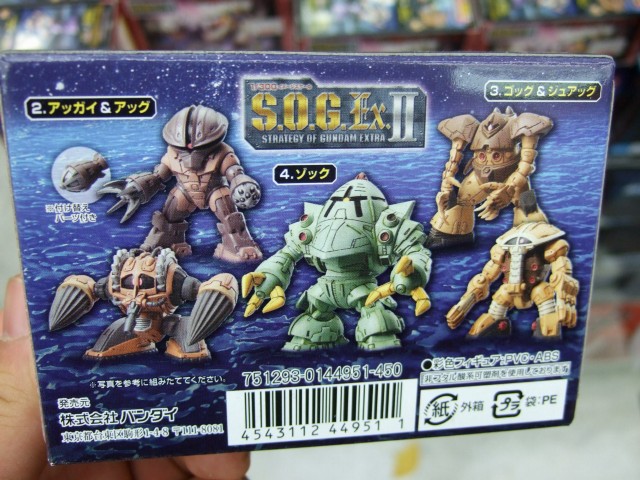 ガンダム&ドムベース、ゾック、アッガイ&アッグ、ゴッグ&ジュアッグの全4種。1BOX8個入り。
