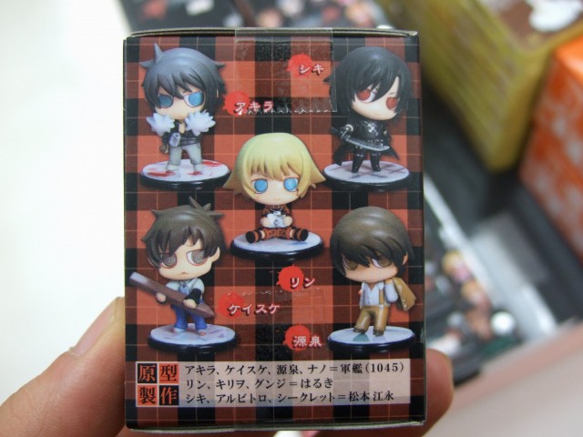 全高40〜50mmで、アキラ、ケイスケ、シキ、リン、源泉、n(ナノ)、アルビトロ、グンジ、キリヲの9種+シークレット1種。1BOX10個入り。