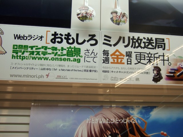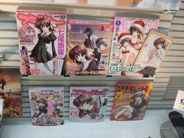 ほか、コスパ製の制服や、今まで発売された、efが表紙の雑誌類、関連書籍なども展示され、上部には音泉の「おもしろミノリ放送局」の告知も。