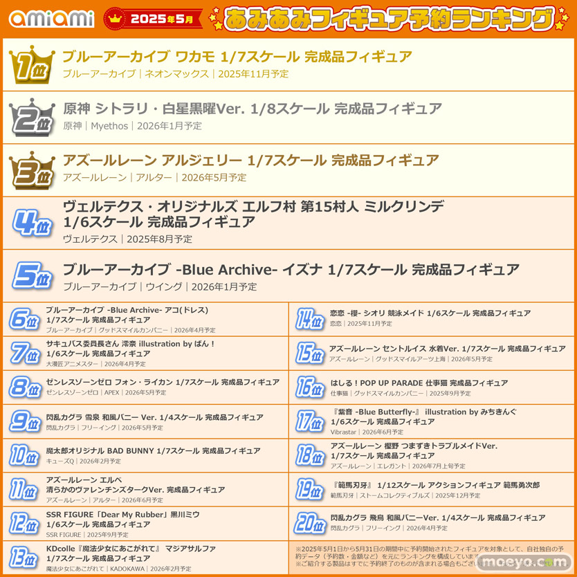 ※2025年5月1日から5月31日の期間中に予約開始されたフィギュアを対象として、自社独自の予約データ(予約数・金額など)を元にランキングを構成しています。