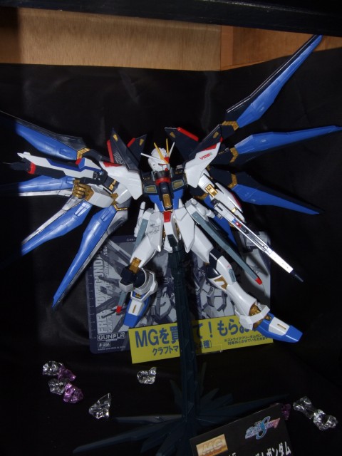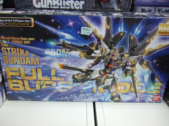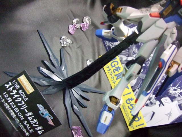 12月21日、バンダイの「1/100 MG ストライクフリーダムガンダム」(AM)と、それにゴールドメッキパーツ、ドラグーンエフェクト、クリアーブルーフライングベース、クリアーポスターが付属した「フルバーストモード」の2種が発売されました。