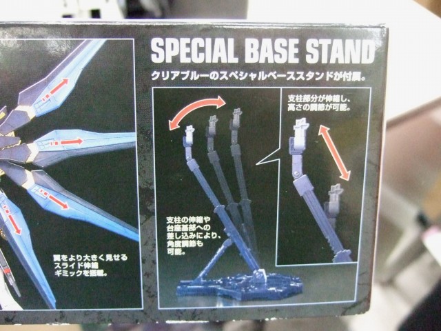 ■劇中の飛行シーンなどを演出する専用台座が付属。台座はストライクフリーダムの象徴的な翼のシルエットをモチーフにデザイン。