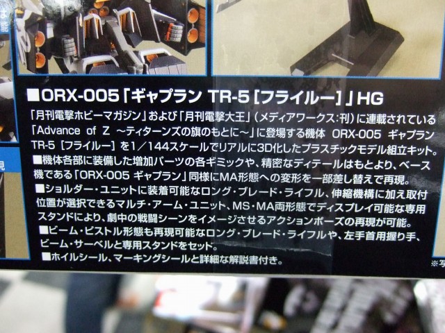 「1/100 MG ストライクフリーダムガンダム」(AM)が入荷していた店舗では、バンダイ「HGUC 1/144 ORX-005 ギャプランTR-5」(AA)(1/144で、価格は税込2,520円)も入荷していました。