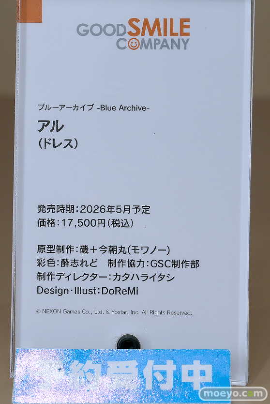 ■ 商品名:「ブルーアーカイブ -Blue Archive- アル(ドレス)」 ■ 発売元:グッドスマイルカンパニー ■ 仕様:PVC塗装済完成品 ■ サイズ:1/7スケール 全高約240mm ■ 原型制作:磯+今朝丸(モワノー) ■ 彩色:酔志れど ■ 制作協力:GSC制作部 ■ ディレクター:カタハライタシ ■ Design・Illust:DoReMi ■ 価格:税込17,500円 ■ 発売:2026年5月 |
