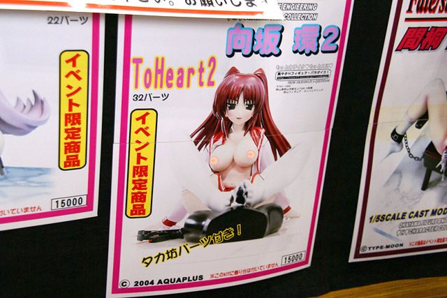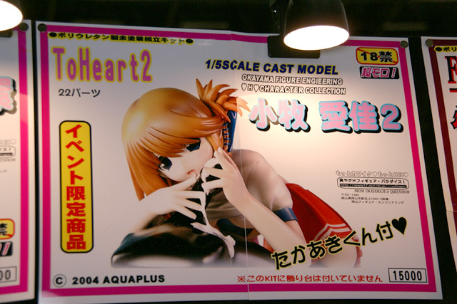 2006年12月23日に開催されたWHF有明15の、岡山フィギュア・エンジニアリングブースの様子をお伝えします。今回は、今までの再販ものに加え、ToHeart2のタマ姉といいんちょの新作がそれぞれ販売、展示されていました。もちろんどちらも今まで通りの、気持いいくらい直球ど真ん中w さらに「たかあきくん・タカ坊パーツ」付属となっていて、とってもえらいことにw