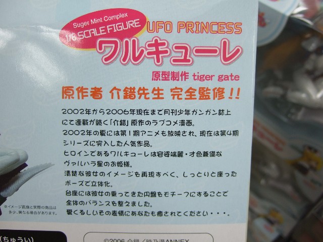 あみあみの商品説明によると「月刊少年ガンガン連載の「円盤皇女ワるきゅーレ」、コミックス6巻表紙のワルキューレをモチーフにした1/6スケールのフィギュアです。ワルキューレの搭乗する円盤型の台座に座るワルキューレは清楚さと色っぽさバツグン!ボリューム満点!今まで、ありそでなかったワルキューレフィギュアの決定版です。」というもの。