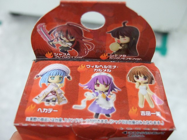 シャナA(フレイムヘイズVer.)、シャナB(カリカリモフモフVer.)、吉田一美、ヴィルヘルミナ、ヘカテーの全5種。1BOX10個入り。