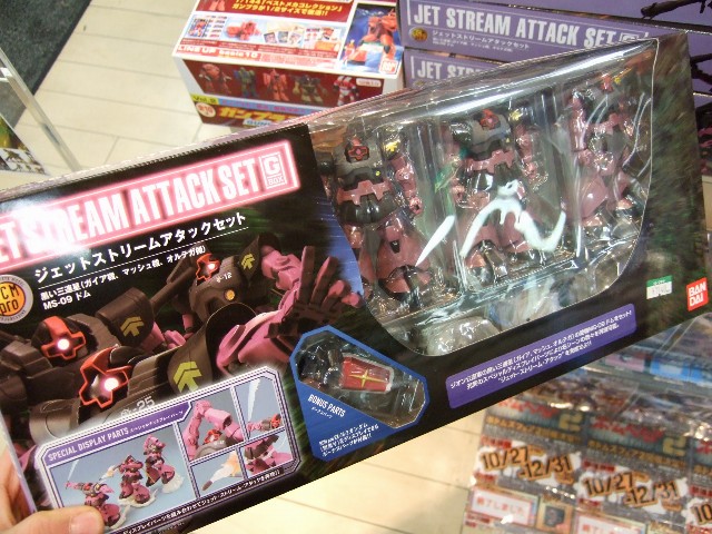 あみあみの商品説明によると「ファーストガンダムに登場した「トリプル・ドム」による「ジェットストリームアタック」のシーンを再現」というもの。