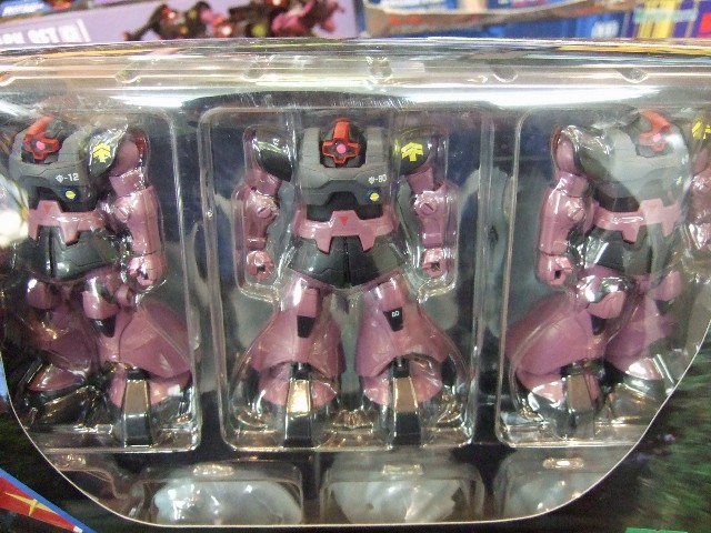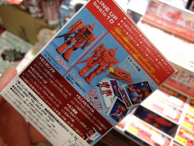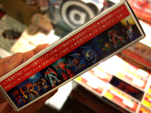 アッガイ、シャア専用ザク、旧型ザク、コアブースター、ゴッグ、シャア専用ズゴック、ボール、アッグ、ゾゴック、ジムの10種。1BOX12個入り。