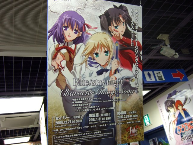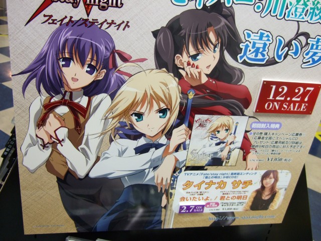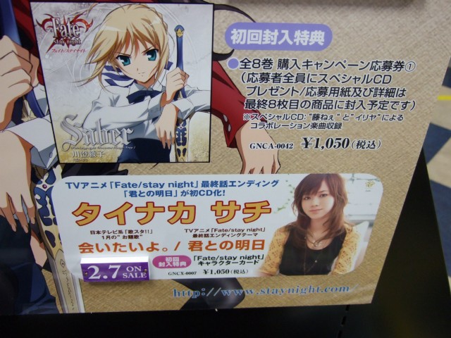 また、アニメ「Fate/Stay night」の「Fate/stay night キャラクターイメージソングI:セイバー(川澄綾子) [Maxi] 」(AA)の告知ポスターがヤマギワソフト本店にて掲示されていました。